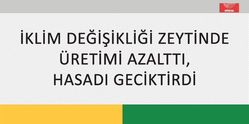 Kuraklık, aşırı sıcak, dolu, fırtına yıl boyunca zeytine ciddi zarar verdi. Hasat geçen yıla göre bir ay gecikmeli yapılıyor. Az sayıda üretici hasada başladı. Yaygın hasadın Kasım’da başlaması bekleniyor.