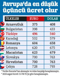Asgari ücrette masaya ekonomik verilerin gelmesiyle rakamlar şekillenmeye başlayacak. Ancak ilk kez 500 doları aşacak olsa bile asgari ücret Avrupa ülkeleri arasında en düşük ücret olmaktan kurtulamayacak.