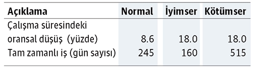 Bu tablo 2020 yılının son çeyreğinde normal, iyimser ve kötümser senaryolara göre ise şöyledir: