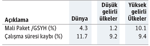 Öte yandan ILO’nun hesaplamalarına göre; düşük gelirli ve düşük-orta gelirli ülkelerin daha yüksek gelirli ülkelerle aralarındaki farkı kapatabilmeleri için ihtiyaç duydukları ek mali canlandırma paketlerinin büyüklüğü 982 milyar dolar düzeyinde, yani yaklaşık 1 trilyon dolar. Bu miktar, bu ülkelerin toplam GSYH’lerinin ortalama %14’ü seviyesindedir.