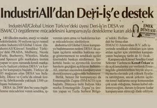 140 ülkeden maden, enerji ve imalat sektöründeki 50 milyon işçiyi temsil eden IndustriAll/Global Union (IndustriAll/Küresel Sendika) Türkiye’deki PRADA, Mulberry, Nicole Farhi, Burberrry, Whistles, Marks and Spencer gibi markalara üretim yapan ve aynı zamanda kendi markasıyla faaliyet yürüten DESA’ya karşı bir kampanya başlattı. Türkiye’de 85 mağazası olan DESA’nın Sefaköy, Düzce ve Çorlu’da olmak üzere üç fabrikasında yaklaşık 1500 çalışanı bulunuyor.