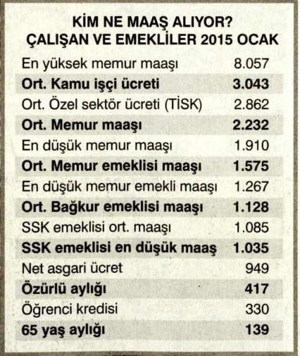 Sosyal vasfını AKP iktidarlarıyla iyice yitiren devletin yaşlı ve özürlülere verdiği aylık da insaf ölçülerinin çok altında. Sayıları 850 bine yaklaşan 65 yaş üstü muhtaçlara verilen aylık 139 TL’den ibaret. Engellilerin aylığı da ortalama 417 TL. Öğrencilere Yurt-Kur tarafından verilen kredi, yani "borç para" ise ayda 330 TL. Sayıları 2 milyonu aşan örgün üniversite öğrencisine verilen bu borç paranın, öğrencinin barınma ihtiyacına bile yetmeyeceği açık.
