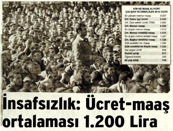 İNSAFSIZLIK:ÜCRET-MAAŞ ORTALAMASI 1.200 LİRA
