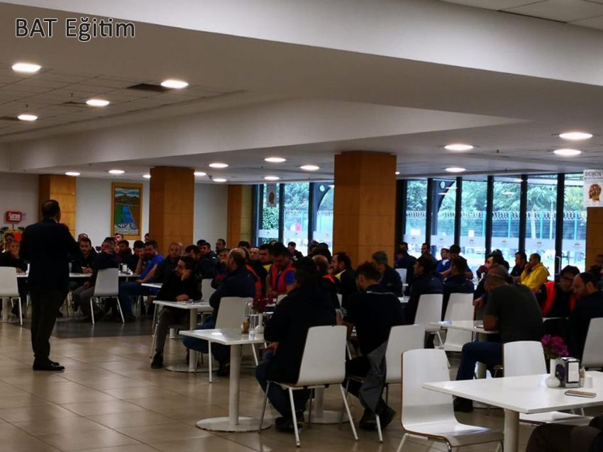British American Tobacco’da (BAT) sürdürdüğümüz eğitimlerimizin bu dönemki finalini, 21 Ekim 2019 günü gerçekleştirdik. BAT’da bulunan üyelerimizin tamamı gruplar halinde gerçekleştirilen 3 eğitim seminerine katılmış oldu. EĞİTİMimize Genel EĞİTİM SEKRETERİmiz Kemal Köse ve Samsun Şube Başkanımız Cafer Erkoç da katıldı.