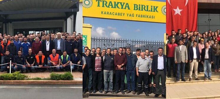 Trakya Birlik işyerlerinde düzenlediğimiz EĞİTİM Seminerlerimizin son durağı Karacabey Tesisleri oldu. Çorlu Entegre Tesislerinin ardından Karacabey’deki eğitimimizin sonuncusunu 22 Ekim 2019 tarihinde gerçekleştirdik. EĞİTİM Seminerini ODTÜ Öğretim Görevlisi Yıldırım Koç verdi. Genel EĞİTİM SEKRETERİmiz Kemal Köse, Mustafa Kemalpaşa Şube Başkanımız Engin Öz de eğitimimize katıldılar.