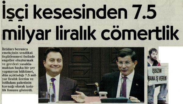 İktidarı boyunca emekçinin sendikal örgütlenmesi önünde engeller oluşturmak ve grevleri yasaklamaktan başka bir şey yapmayan hükümet, dün açıkladığı 7.5 milyar liralık üretim ve istihdam paketinin kaynağı olarak işsizlik fonunu gösterdi.