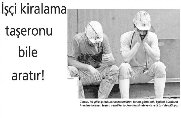"Modern kölelik sistemi" olarak da nitelenen özel istihdam bürolarına ilişkin mevzuatta kritik değişiklikler yapılıyor. Düzenlemenin bu şekliyle yasalaşması halinde özel istihdam büroları ile kiralanacak işçiler arasında sözleşme imzalanabilecek. Bu durumda kurulacak iş ilişkisi, işçi ile işçi kiralama bürosu arasında olacak. Böylece, kiralık işçinin çalışmak üzere gönderildiği yerdeki patronun hukuki sorumluluğu da büyük oranda ortadan kaldırılmış olacak.