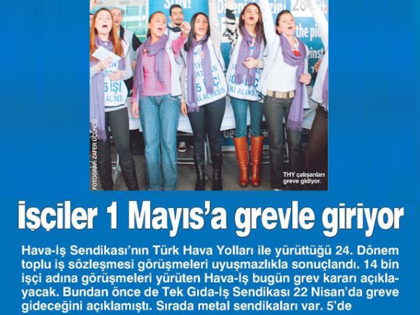 Tekgıda-İş Sendikası 22 Nisan’da greve gideceğini açıklarken, Hava-İş Sendikası bugün yapacağı basın toplantısı ile grev kararı aldığını duyuracak ve Atatürk Havalimam’na "Bu iş yerinde grev vardır" yazısı asılacak.