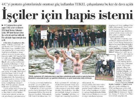4/C?statüsüne karşı eylem yapan TEKEL?işçileri ve dönemin DİSK?Genel Başkanı Süleyman Çelebi, TKP?Genel Başkanı Erkan Baş ve birçok sendikacı hakkında 8’er yıla kadar hapis istemiyle dava açıldı.