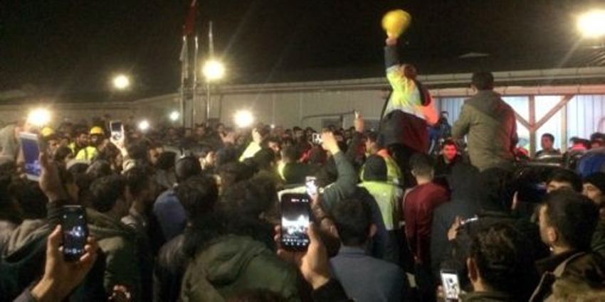 İş cinayetleriyle gündeme gelen 31 bin işçinin çalıştığı 3.havalimanı inşaatının Akpınar kampındaki işçiler, barındıkları tek kişilik odaların 2’ye, 2 kişilik odaların 4’e, 4 kişilik odaların ise 6 kişiye çıkarılmasını ve servis koşullarını düzenledikleri eylemle protesto etti.