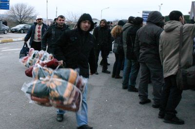 TEKEL işçilerin Ankara’ya akını sürüyor. İstanbul Cevizli TEKEL işçileri de bu sabah Ankara’ya hareket etti. İşçiler kefenlerini giydi, battaniyelerini yanlarına aldı Başbakana şöyle seslendi: “TEKEL işçisi evine dönecek ancak haklarını alınca.”