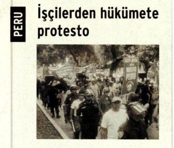 SENDİKALI işçiler neoliberal ekonomi politikalarına karşı sokaklara çıktı. Başkent Lima´da yapılan 2 yürüyüşe binlerce işçi katıldı, ilk yürüyüş, grevdeki devlet petrol şirketi PetroPeru işçileri tarafından yapıldı, işçiler, hükümetin Talara eyaletindeki petrol kaynaklarına yatırım yapmayı reddetmesini eleştirdi.