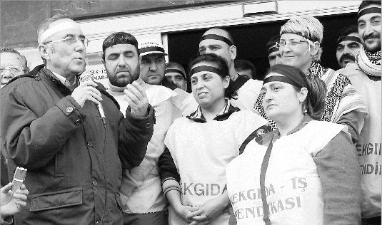 ANKARA (Cumhuriyet Bürosu) – TEKEL işçilerinin özlük hakları için Türk-İş Genel Merkezi önünde başlattıkları eylem, bugün 63. güne ulaştı. Gazetemiz yazarı, şair Ataol Behramoğlu, TEKEL işçilerine destek vermek amacıyla önceki gün başlattığı bir günlük “açlık grevi”ni dün sonlandırdı. İşçilerin alkışları ve sloganları arasında Türk-İş Genel Merkezi’nden uğurlanan Behramoğlu, “14 Şubat Sevgililer Günü” nedeniyle de kadın TEKEL işçilerinden bazılarına karanfil ve gül verdi.