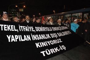 Türk-İş’in düzenlediği "Demokrasi ve Haklar" mitingine katılmak için Ankara Tren Garı’nda toplanan grupların Sıhhiye Meydanı’na yürüyüşü başladı.