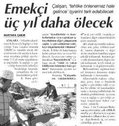 Yıllardır çıkarılması beklenen İş Sağlığı ve Güvenliği Yasa Tasarısı sonunda TBMM’ye sunuldu ancak düzenlemenin çok sayıda iş kazasının meydana geldiği işyerlerinde 2-3 yıl sonra uygulanması öngörüldü. İş sağlığı ve güvenliği hizmetinin şirketlere bırakıldığı tasarıda, çalışanlara da yükümlülükler getirildi. Buna göre, çalışanlar “kendilerinin ve hareketlerinden veya yaptıkları işten etkilenen diğer çalışanların sağlık ve güvenliklerini tehlikeye düşürmemekle yükümlü” olacak. Tehlike ile karşı karşıya kalan çalışan önce işverene bildirecek. İşveren izin verirse çalışmaktan “kaçınabilecek”. Çalışan ancak “ciddi ve yakın tehlikenin önlenemez hale gelmesi” durumunda işyerini hemen terk edebilecek.