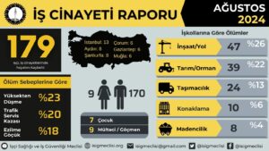 İşçi Sağlığı ve İş Güvenliği (İSİG) Meclisi Ağustos 2024’e ilişkin İş Cinayeti Raporu’nu açıkladı.