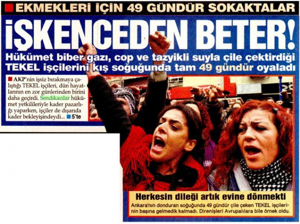 Hükümet biber gazı, cop ve tazyikli suyla çile çektirdiği TEKEL işçileri kış soğuğunda tam 49 gündür oyaladı.