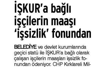 BELEDİYE ve devlet kurumlarında geçici statü ile İŞKUR´a bağlı olarak çalışan işçilerin maaşları işsizlik fonundan ödeniyor.