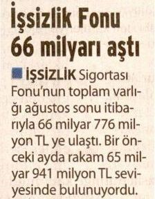İşsizlik Sigortası Fonu´nun toplam varlığı ağustos sonu itibarıyla 66 milyar 776 milyon TL ye ulaştı.