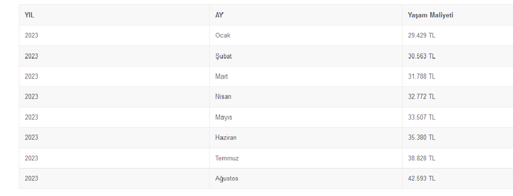 Ağustos ayında İstanbul’da dört kişilik bir ailenin ortalama yaşam maliyeti 42 bin 593 lira olarak hesaplandı. İstanbul’da ortalama yaşam maliyeti, temmuz ayında 38 bin 828 liraydı. İstanbul’da ortalama yaşam maliyeti, geçtiğimiz aya göre 3.765 lira arttı.