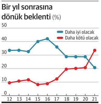 Geleceğe olan bakışı olumsuz olanların oranı böylece ilk kez geçen yıl olumlu bakanların oranını geride bırakıyor.