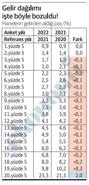 “Üçte ikisinin görece dingin geçtiği 2021 yılındaki gelir dağılımı bir önceki yıla göre şimdiye kadar görülmedik ölçüde bozulmuşsa, nüfusun yüzde 85’lik kesiminden yüzde 5’lik kesime servet transferi olmuşsa, o zehirli meyvelerin yendiği 2022’de nasıl bir tablo oluşmuştur acaba?”