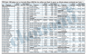 Şimdi elimizde 2022 nisanındaki endeks hesaplamasında dikkate alınan fiyatlar var.