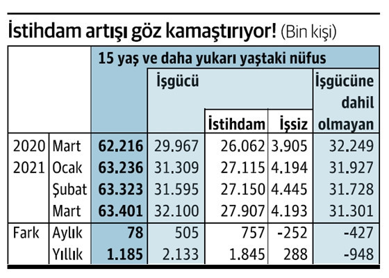 Mart ayına ilişkin işgücü istatistikleri açıklandığında ne görelim; meğer istihdam fırlamış gidiyor da haberimiz yokmuş!