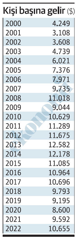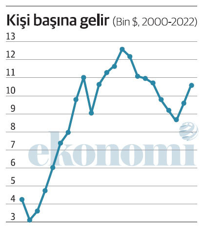 Son olarak 2017’de 10.696 dolarla 10 bin sınırının üstünde oluşan kişi başına gelir, geçen yıl da 10.665 dolar olarak gerçekleşti.