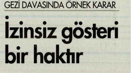 Gezi Direnişi´ne destek için Kadıköy´de düzenlenen eyleme katıldıkları gerekçesiyle hakkında dava açılan 15 kişinin beraatına karar veren mahkeme, ´İzinsiz gösteri´ tanımını tartışmaya açacak bir karara imza attı.