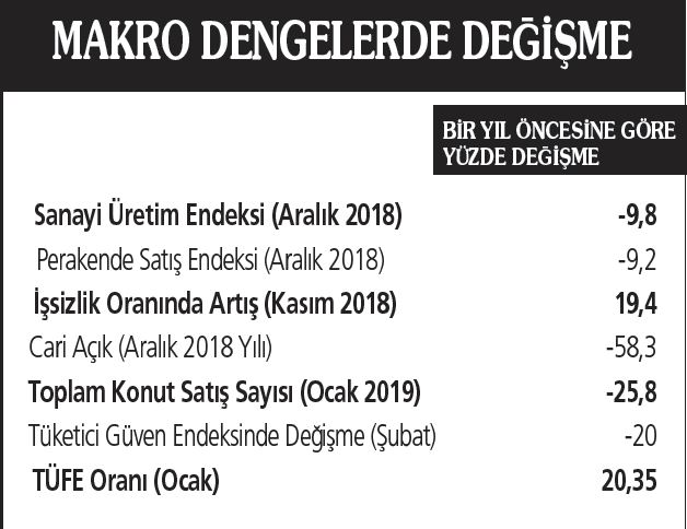 Öte yandan Aralık 2018 ayında sanayi üretim endeksi bir önceki yılın aynı ayına göre yüzde 9.8 oranında geriledi. İşsizlik artıyor. Perakende satışlar da Aralık ayında bir yıl öncesine göre yüzde 9.2 oranında düştü. Perakende satışların düşmesi, toplam talepte düşmeyi gösteriyor. Bu verilerin hepsi Türkiye İstatistik Kurumu (TÜİK) verileridir.