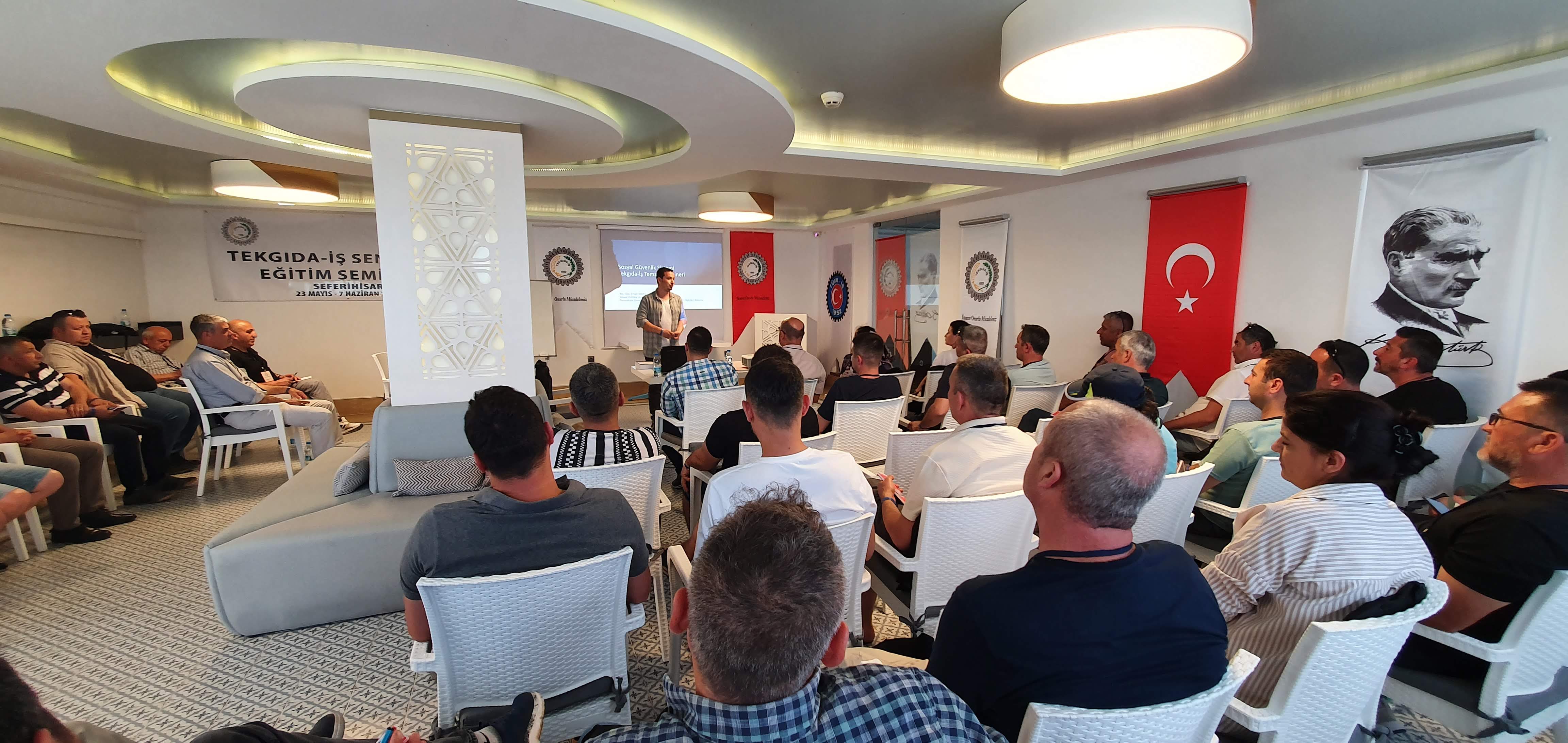 Açılışını Genel Eğitim Sekreterimiz Kemal Köse’nin yaptığı dört gruptan oluşan eğitimlerimiz, 23 Mayıs-07 Haziran 2022 tarihleri arasında Seferihisar’da mülkiyeti sendikamıza ait, işletmesi özelde olan Labranda Lebedos Otel’de gerçekleştirildi. Eğitimlerimizde Temsilcilerimizle Genel Başkanımız Mustafa Türkel de bir araya gelerek, temsilcilerin görev ve yetkilerini anlattı. ODTÜ Öğretim Görevlisi Yıldırım Koç, Çalışma Hayatı ve Ekonomik Göstergeler hakkında, Pamukkale Üniversitesi Araştırma Görevlisi Erkan Kıdak, Sosyal Güvenlik Hukuku ve hesaplama yöntemleri hakkında, Sendikamız Bilgi İşlem Sorumlusu Evren Talkım da Sosyal Medya Kullanıcılığı hakkında eğitim verdi. Temsilci Eğitimlerinden sonra Kadın Komisyonu Başkanlarımız önce Yıldırım Koç’tan tarihte ve çalışma hayatında kadın konulu eğitim ardından da Kadın Komisyonu başkanları Komisyonun Sekreterya görevini yürüten Sendikamızın Teşkilat Servisi Sorumlusu Neslihan Taşoluk Nakaş tarafından Kadın Örgütlenmesi ve İletişim konularında bilgi aldı ve Atölye çalışması gerçekleştirdi. Temsilci eğitimlerimizin ikinci etabı Eylül ayında gerçekleştirilecek.