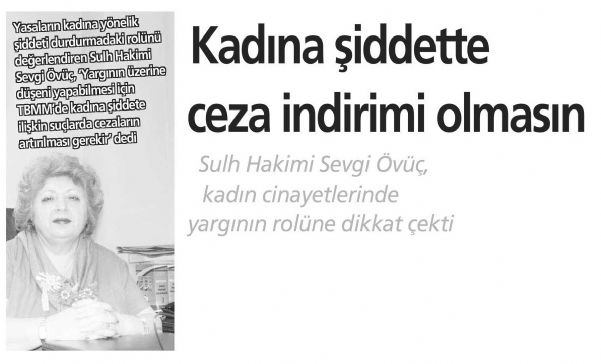 Tecavüz ve kadın cinayeti davalarında faillerin en alt sınırdan verilen cezalar ve uygulanan tahrik indirimleri sonucu kısa süre hapis yatıp çıkmaları mevcut hukuk sistemini bir kez daha tartışmalı hale getirdi. Bu konuda istanbul Anadolu Sulh Hukuk Mahkemesi Hakimi, aynı zamanda YARSAV ve Yargıçlar Sendikası istanbul Temsilcisi Sevgi Övüç’le görüştük.