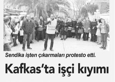 BURSA’da bulunan Kafkas Şekerleme’de çalışan 3 işçi işten çıkarıldı. Kafkas Şekerleme’de çalışan işçiler, 2014 yılı başında Tekgıda-İş’e üye olmaya başladı. Sendika yıl ortasında çoğunluğu sağlayarak Çalışma Bakanlığı’na yetki başvurusunda bulundu. Sendika yetki tespitim aldı ancak işveren itiraz etti. 1 yıla yakın süredir işçilere yapılan baskıların sonuç vermemesi üzerine işveren 3 işçiyi işten çıkardı.