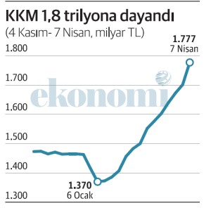 KKM’nin azalmaya başlayıp bir anlamda dip yaptığı 6 Ocak’tan 7 Nisan’a kadar geçen üç ayda tam 407 milyar lira artış oldu.