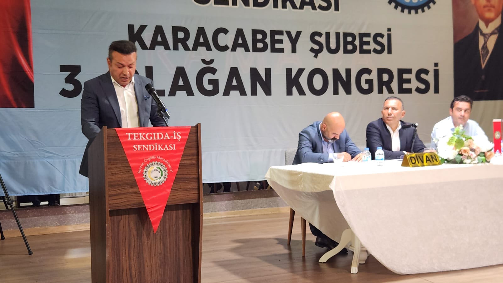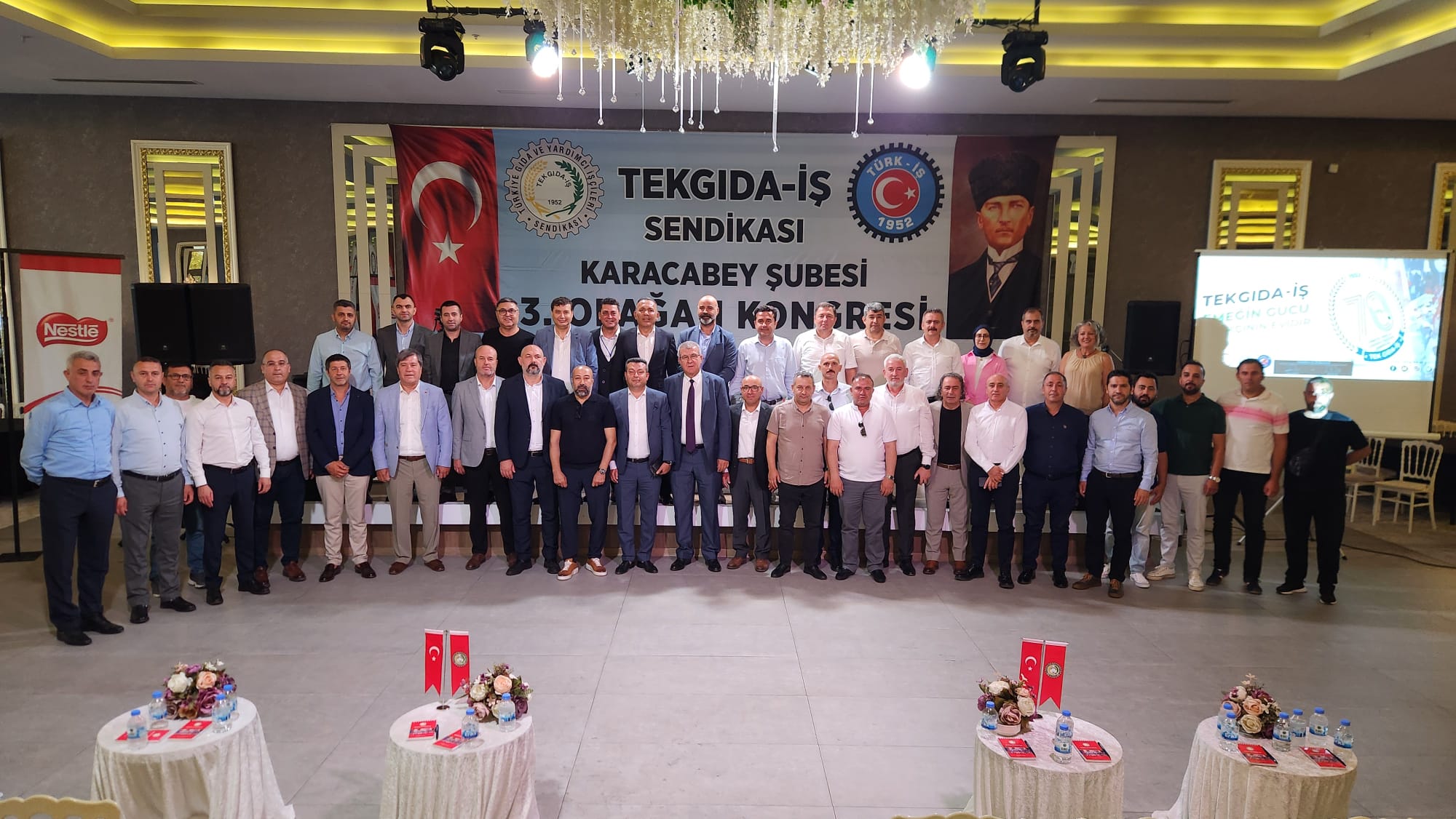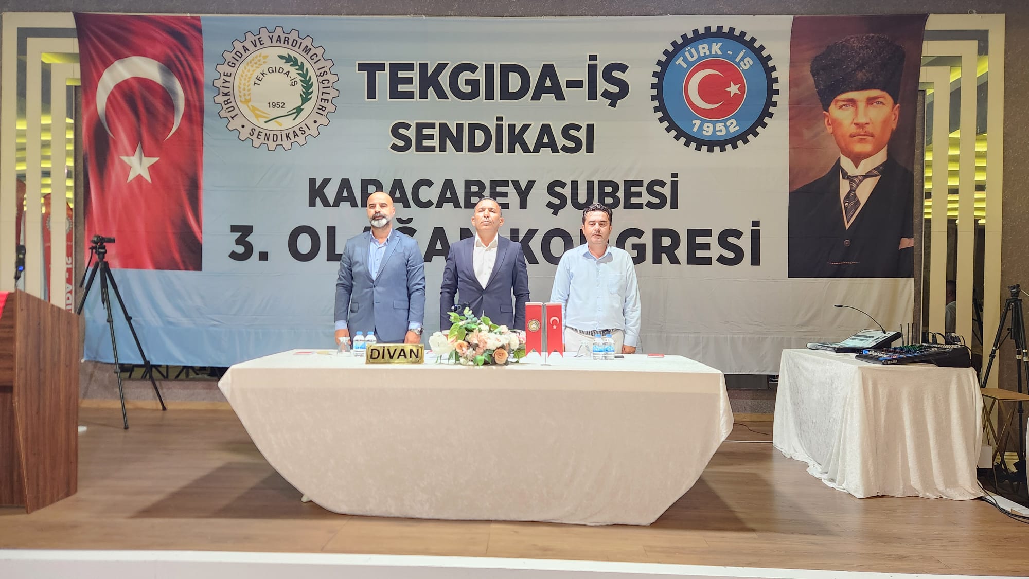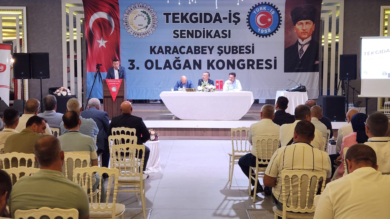 Tekgıda-İş Sendikası Karacabey Şubemizin 3. Olağan Kongresi, ülkemizin içinde bulunduğu zorlu ekonomik şartlar ve işçi sınıfının büyüyen sorunları eşliğinde, yüksek düzeyde katılım ve örgütlü birlik mesajlarıyla tamamlandı.