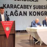 Kongrenin açılış konuşmasını Karacabey Şube Başkanımız Sayın Ergün Çarıkçı gerçekleştirdi. Çarıkçı konuşmasında özelleştirme politikalarının işçilere etkileri ve taşeronlaşmanın yarattığı yapısal tahribata dikkat çekerek, “İşçi sınıfı parçalanıyor, bölünüyor. Bizi ancak inadına örgütlenme ve inadına birlik kurtarır.” sözleriyle salondan büyük alkış aldı.