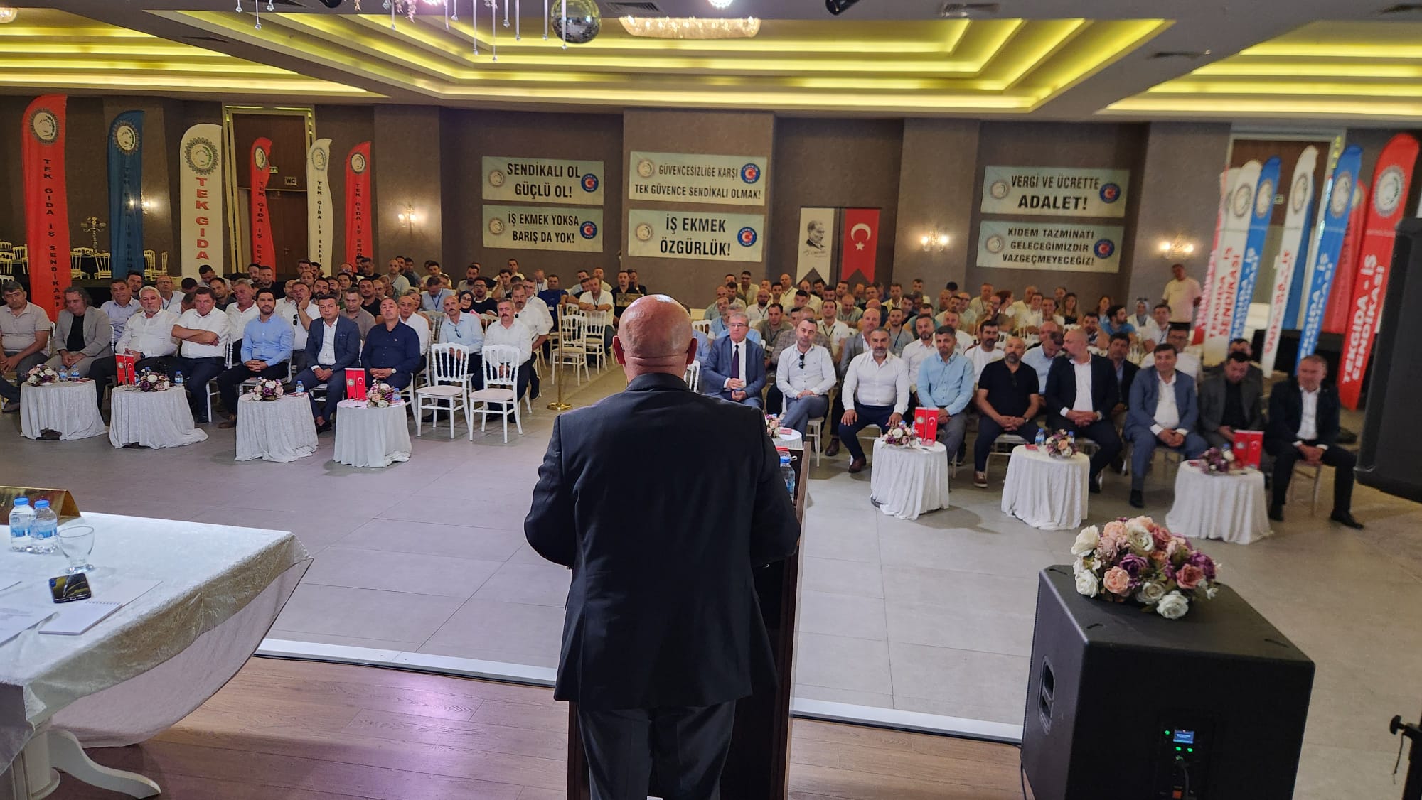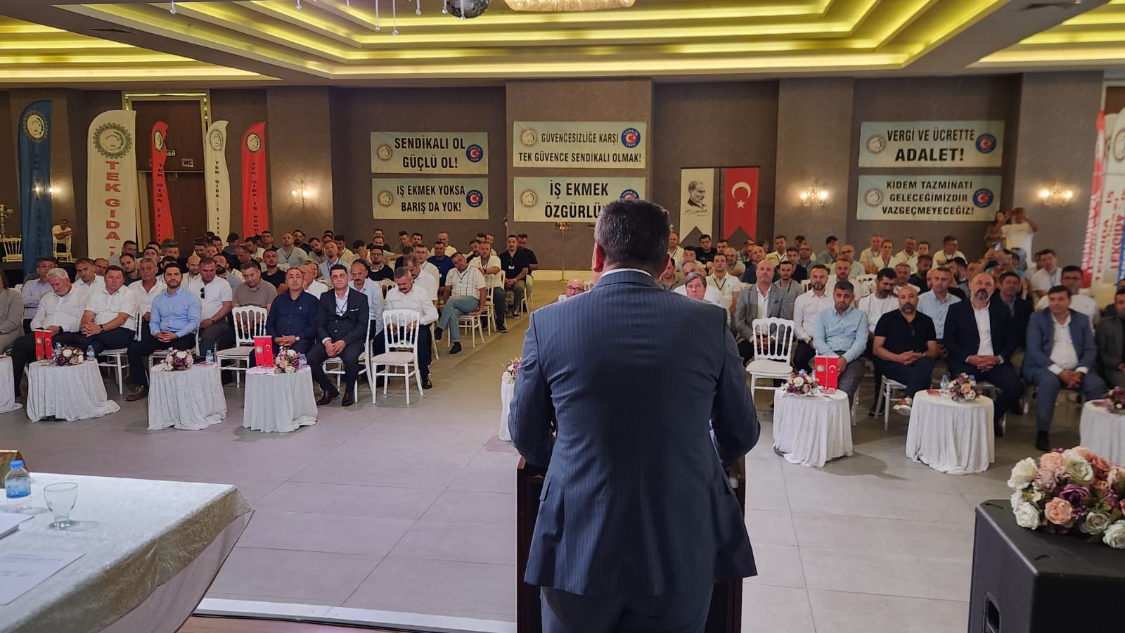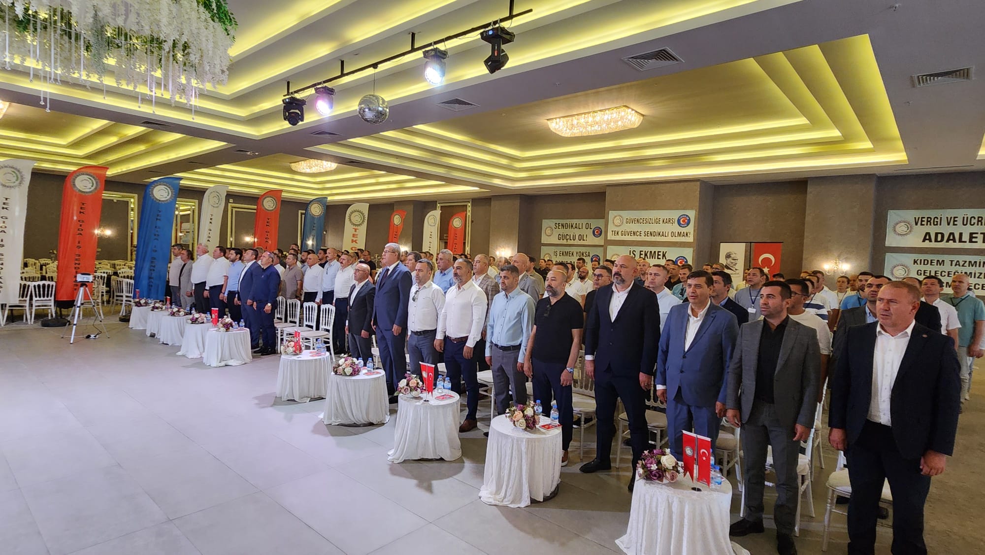 Türk-İş 8. Bölge Başkanı Ruhi Biçer ve sendikamız yöneticileri söz alarak güncel ekonomik tabloyu, kamu sözleşme süreçlerini ve işçi sınıfının karşı karşıya olduğu sorunları değerlendirdiler.