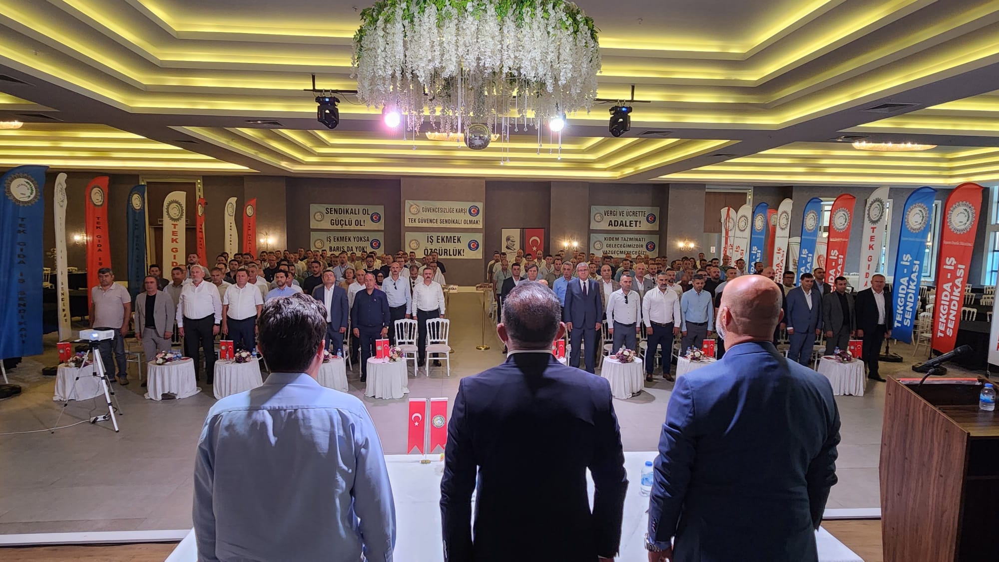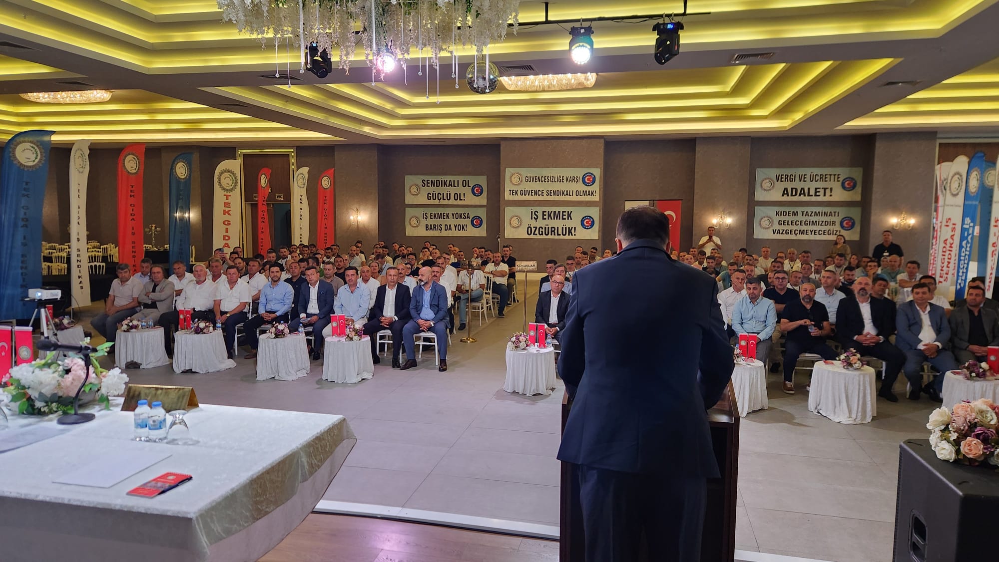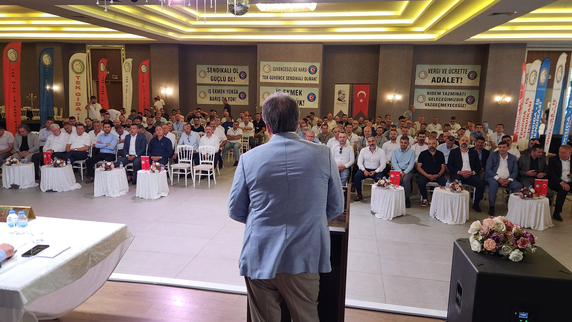 Türk-İş 8. Bölge Başkanı Ruhi Biçer ve sendikamız yöneticileri söz alarak güncel ekonomik tabloyu, kamu sözleşme süreçlerini ve işçi sınıfının karşı karşıya olduğu sorunları değerlendirdiler.