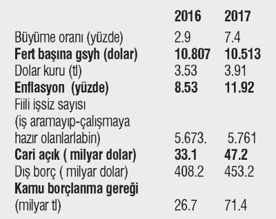 2. Cari Dolar olarak Fert başına GSYH 2016 yılında 10.807 dolar iken 2017 yılında 10.513 dolara geriledi. Yıllık ortalama Dolar kuru aynı yıllarda 3.53’ten, 3.91’e çıktı.