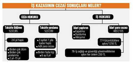 10 işçimizi göz göre göre, “Geliyorum” diyen bir iş kazası ile kaybettik. Peki sorumlulara verilmesi beklenen cezalar konusunda mevzuat ne öngörüyor? Söz konusu kazada işçilerimizi yitirdik ama şimdi ‘sorumlular’ denilerek gözaltına alınanlar da işçi. Öte yandan sorumlu denilecek kişilere verilecek cezalar da 2 yıldan başlayıp 15 yıla kadar gidebiliyor.