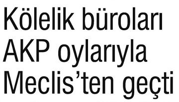 KÖLELİK BÜROLARI AKP OYLARIYLA MECLİS’TEN GEÇTİ