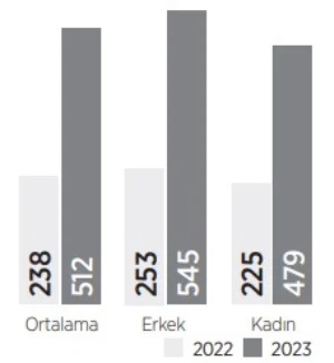 TÜİK verilerine göre mevsimlik tarım işçilerinin ortalama günlük ücretleri 2023 yılında yüzde 114,6 artarak 512 TL, sürekli tarım işçilerinin aylık ücretleri ise yüzde 105,2 artarak 13 bin 435 TL oldu. Mevsimlik erkek işçi ücretlerindeki önceki yıla göre artış yüzde 115,7; kadın işçilerin günlük ücretlerinde ise yüzde 113 olarak gerçekleşti. Sürekli tarım işçilerine ödenen aylık ücret, erkek işçiler için yüzde 112 oranında artarken kadın işçiler için yüzde 88,1 oranında yükseldi.