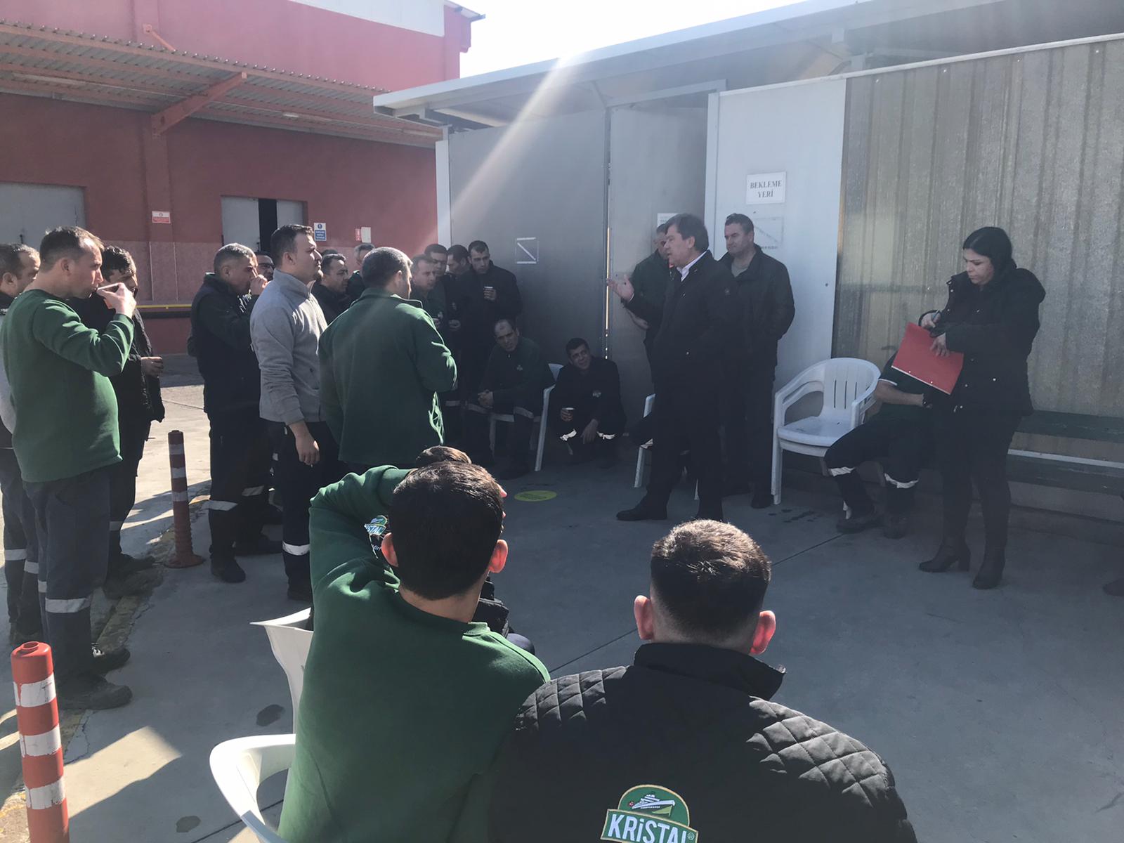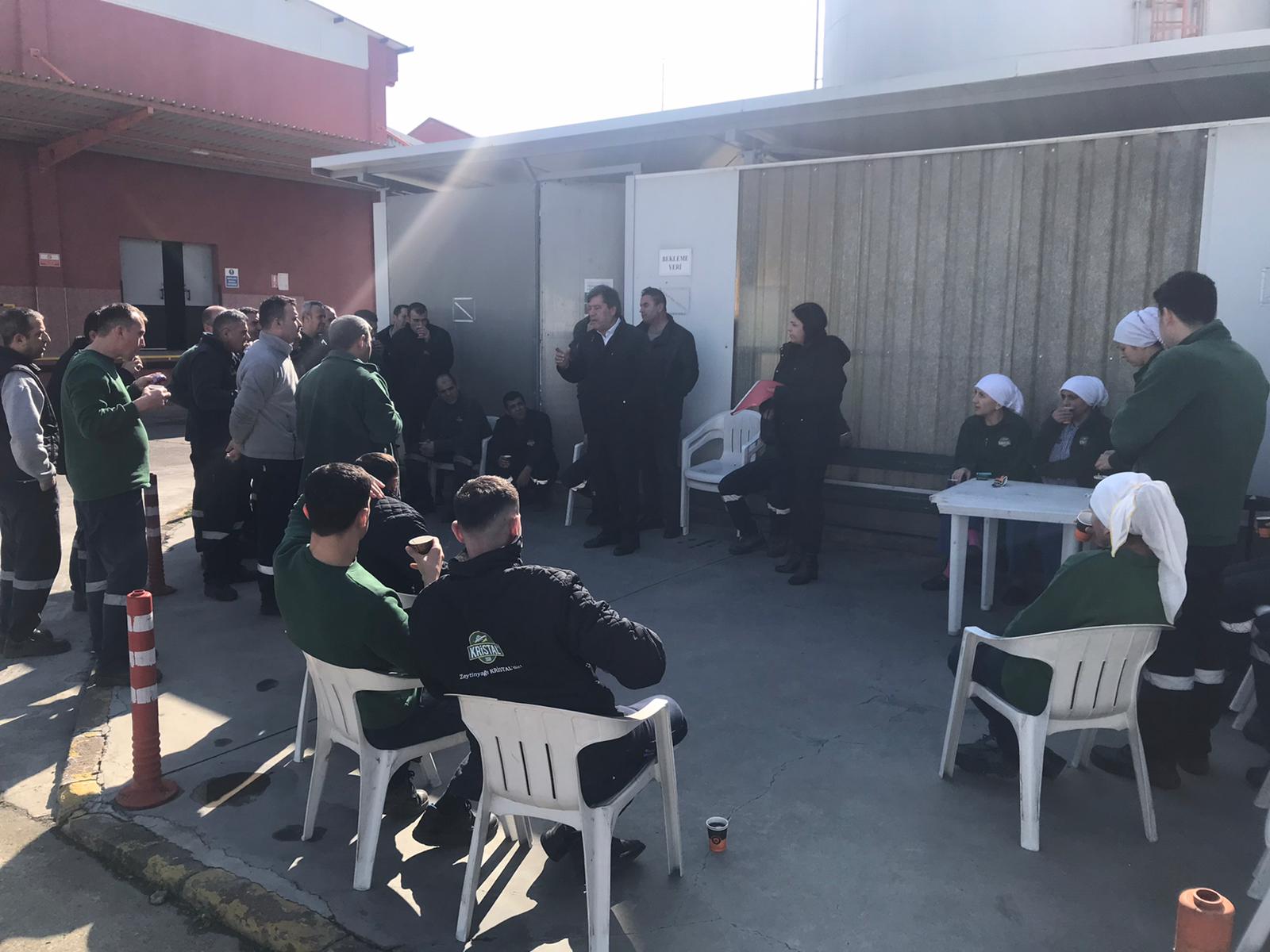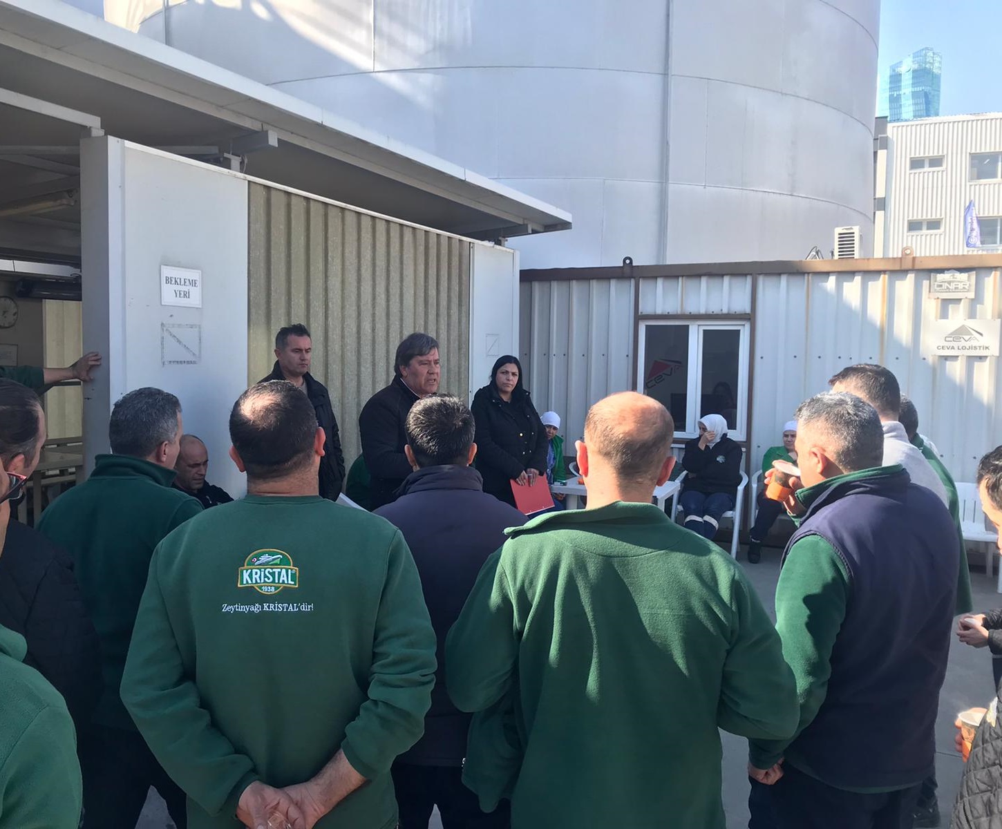 Fabrika yerleşkesinde yapılan toplantıya sendikamız adına İzmir 3 Nolu Şube Başkanımız Latif Gökçay, Şube Personelimiz Volkan Temese ile işyeri temsilcilerimiz Fatih Pekcan ve Gülnaz Küçüközmen katıldı.