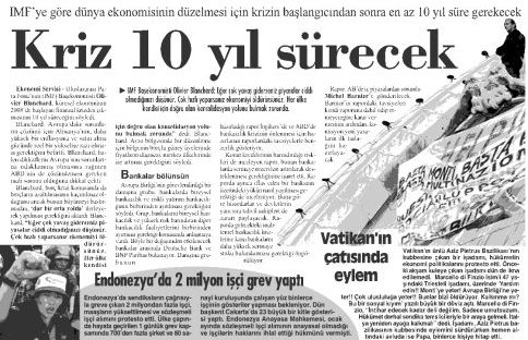 IMF Başekonomisti Olivier Blanchard: Eğer çok yavaş giderseniz piyasalar ciddi olmadığınızı düşünür. Çok hızlı yaparsanız ekonomiyi öldürürsünüz. Her ülke kendisi için doğru olan konsolidasyon yolunu bulmak zorunda.