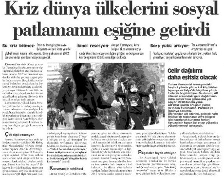 Dünya şu sıralar Yunanistanın durumunun ne olacağına kilitlenirken ardı ardına açıklanan raporlar 2012nin ekonomik açıdan hiç de kolay geçmeyeceğini gözler önüne seriyor. Birçok ülke sert tasarruf önlemleri uygularken bu önlemler sosyal patlamalara da davetiye çıkarıyor. Hükümetler özellikle tasarruflar için çalışanların ücretlerine göz dikerken gelişmiş ülkelerde bile işsizlik oranları hızla artıyor.