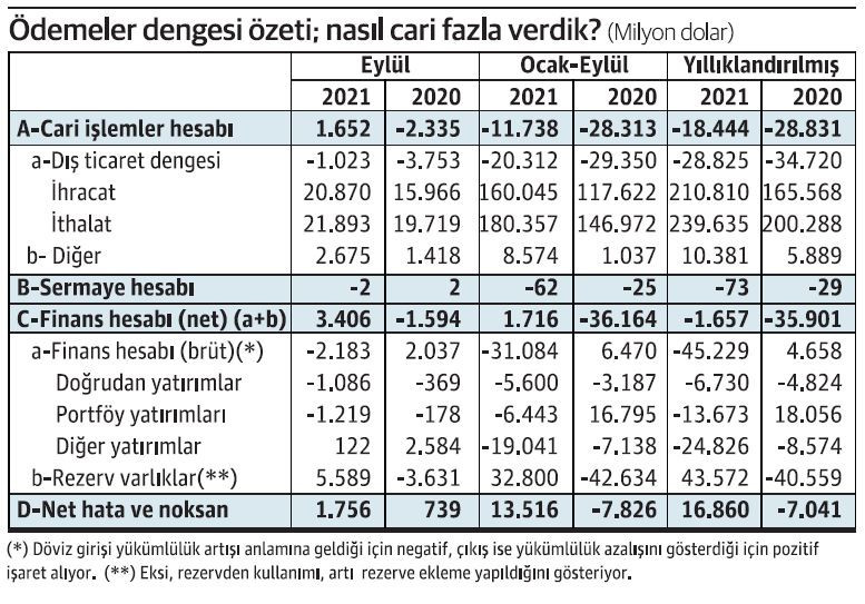 En azından son iki ay için bunu söyleyebiliriz. Merkez Bankası verilerine göre ağustostan sonra eylülde de fazla verildi. Ama yine de ilk dokuz ayda ve son bir yılda açık var. Hem zaten bu yılın tümünü de açıkla kapatacağımız kesin. OVP’de yer alan açık tahmini 21 milyar dolar. Yılın tümünde muhtemelen 21 milyar açığa çıkılmaz ama yine de 15 milyar dolar civarında bir açık makul görünüyor.