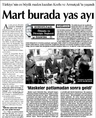Neden mi Zonguldak Havzası’ndayım? Çünkü mart ayı madenciler için en acılı aydır. Çünkü yeryüzünün en büyük maden kazası 1992 yılının 3 Mart günü Kozlu madeninde yaşandı. Ölü sayısı 263 olarak belirlendi, ikinci en büyük kaza 1983 yılının 7 Mart günü Armutçuk madeninde yaşanmıştı. Ölü sayısı 103 olarak belirlendi.