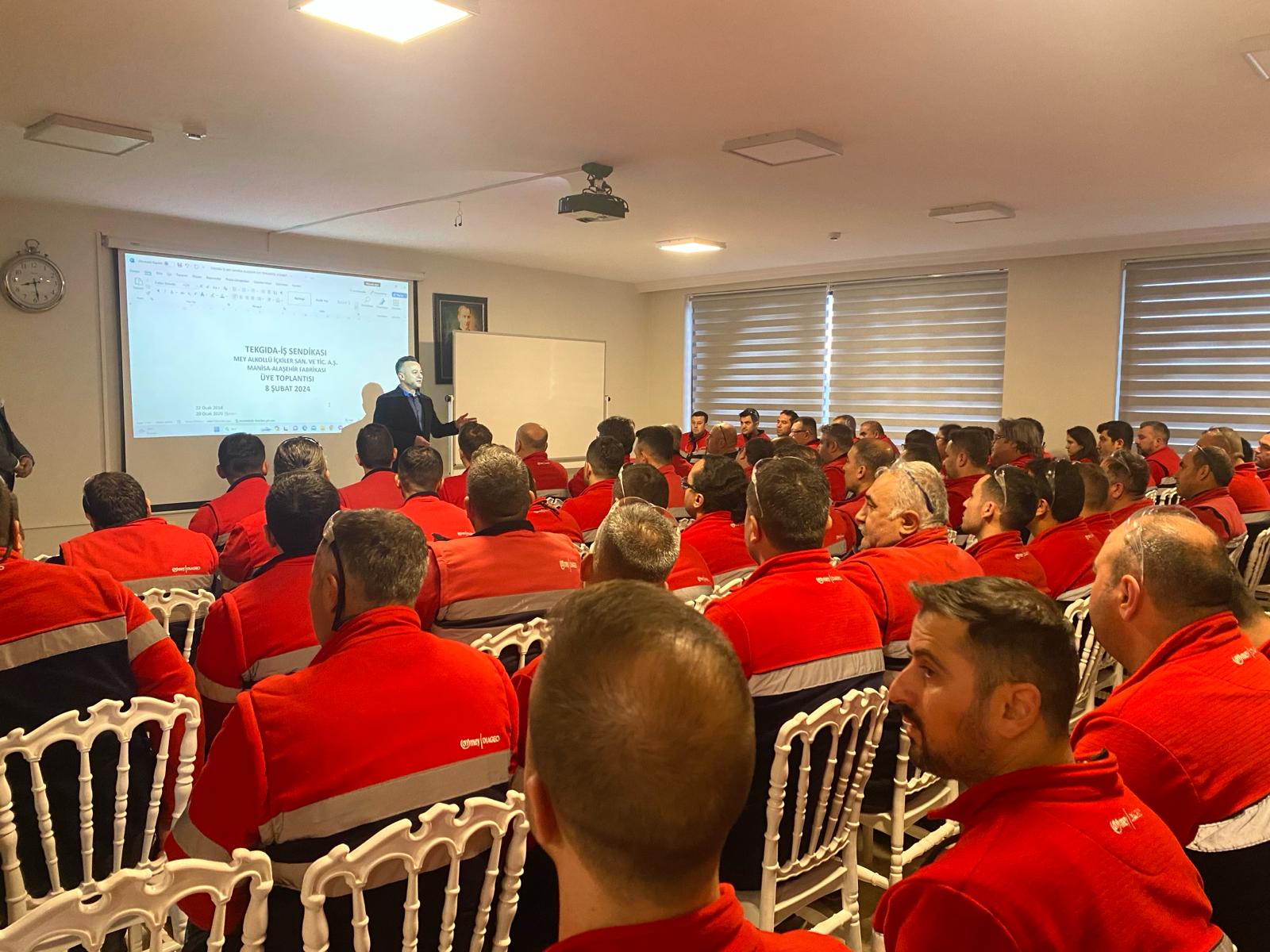 10 Şubat 2024 tarihinde Alaşehir Fabrikasında, 12 Şubat 2024 tarihinde de Şarköy Fabrikasında üyelerimize yönelik düzenlediğimiz Çalışma Hayatı Yasaları ve Endüstriyel İlişkiler eğitimi ile bu TİS dönemi eğitimlerimizi MEY Fabrikalarında bitirmiş olduk. Eğitimlerimizi, ODTÜ Öğretim Görevlisi Yıldırım Koç verdi. Eğitimlerin açılışını Genel Eğitim Sekreterimiz Engin Öz ve Manisa Şube Başkanımız Yavuz Uçkıran ile Tekirdağ Şube Başkanımız Aytaç Göçmen yaptı. Genel Eğitim Sekreterimiz ve Şube Başkanlarımız, sendikal konularda üyelerimizi bilgilendirdiler. Üyelerimiz sorularıyla eğitimlere aktif katılım sağladılar. MEY DIAGEO Yönetimine sergiledikleri işbirliği ve katkıları için teşekkür ederiz.