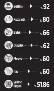 -Hastane Hizmetleri: %62,98 – Sağlık hizmetleri bile giderek daha pahalı hale geliyor.